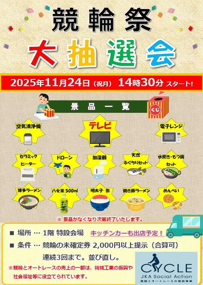 【競輪】《イベント》2025年11月24日(祝 月)競輪祭 大抽選会のお知らせ