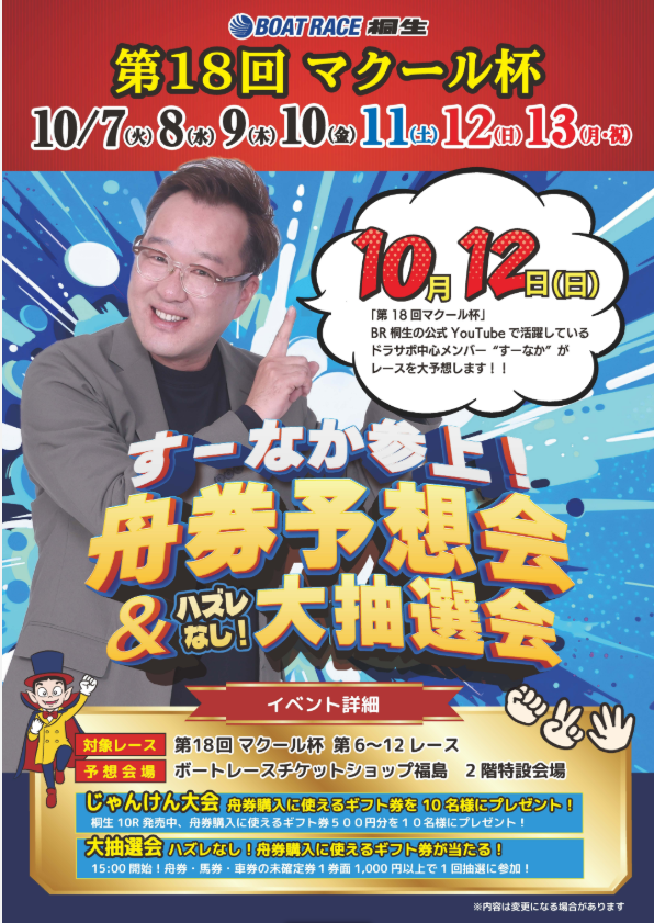【ボートレース】《イベント》ボートレースチケットショップ福島 2025年10月12日(日)舟券予想会&大抽選会開催のお知らせ