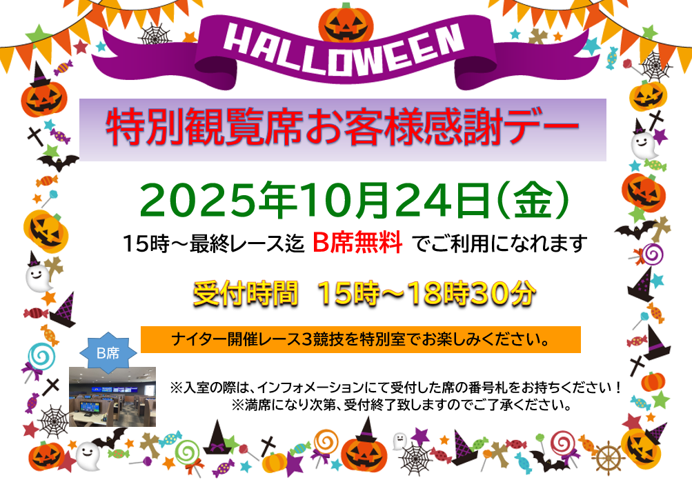 ナイター開催 3競技レースを特別室でお楽しみください!