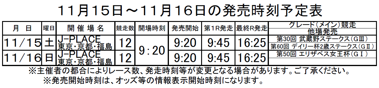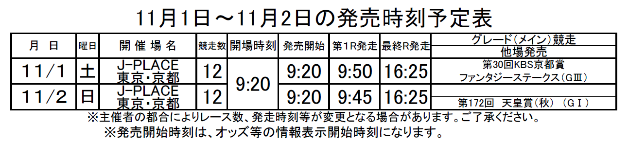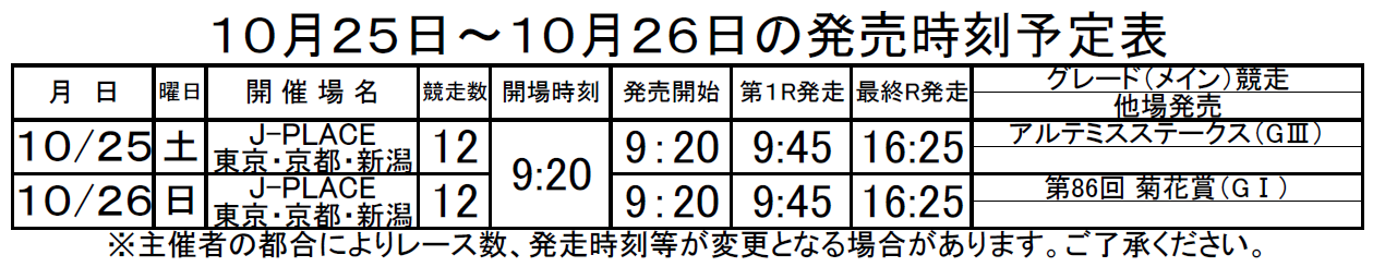 【地方競馬・J-PLACE】2025年8月~2025年11月発売日程表 設置のお知らせ