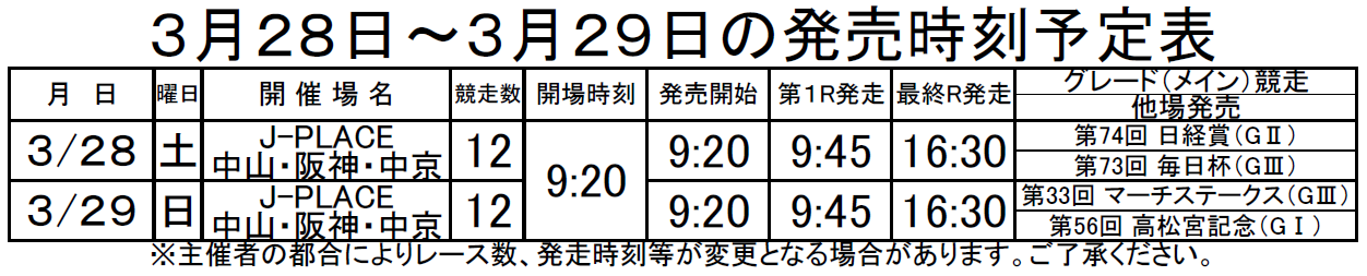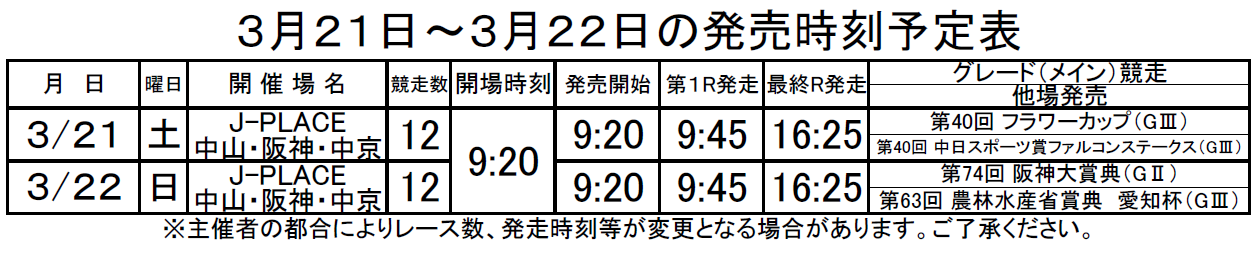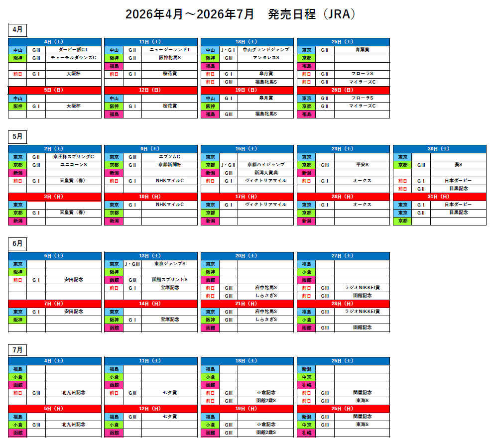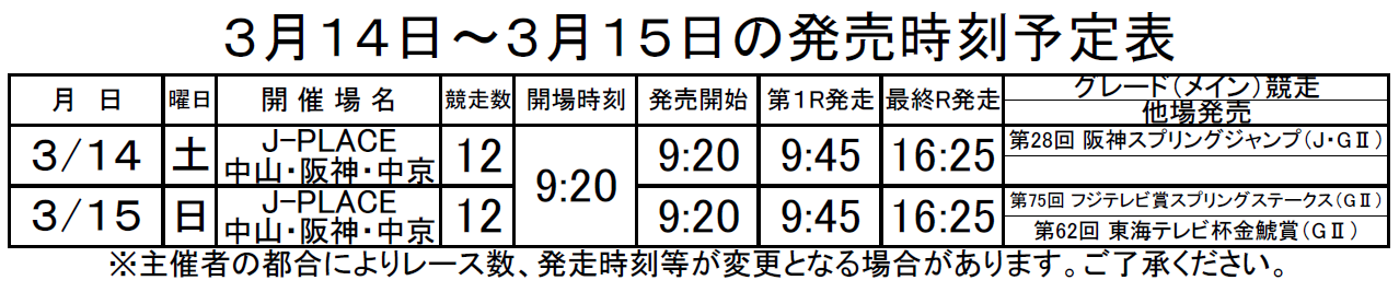 - 発売日程は予定につき日程及び競走タイトル名が変更される場合があります。