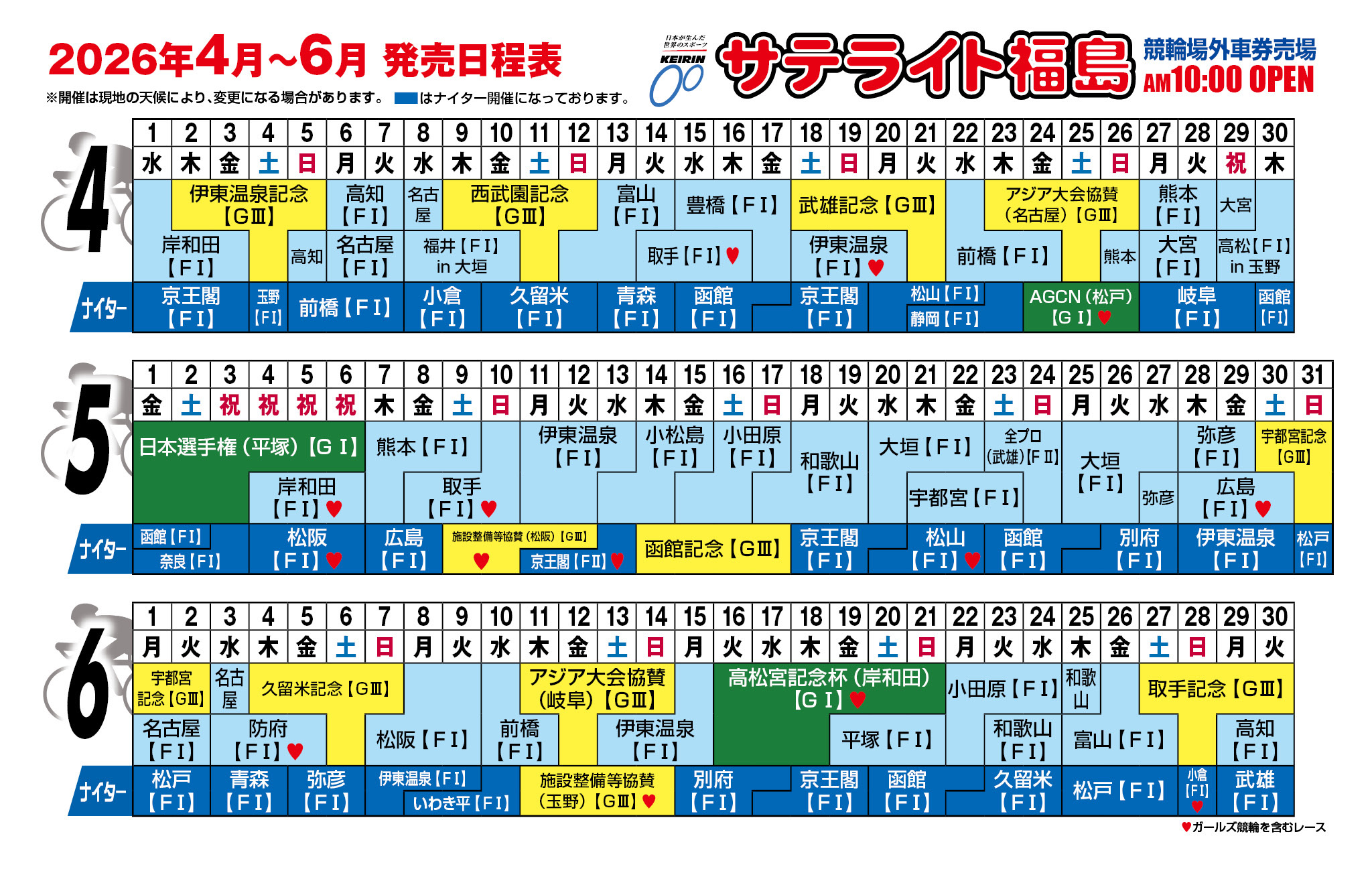 - 発売日程は予定につき日程及び競走タイトル名が変更される場合があります。