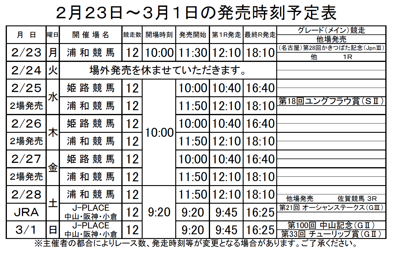JRA・ダートグレード・南関東重賞競走(予定)