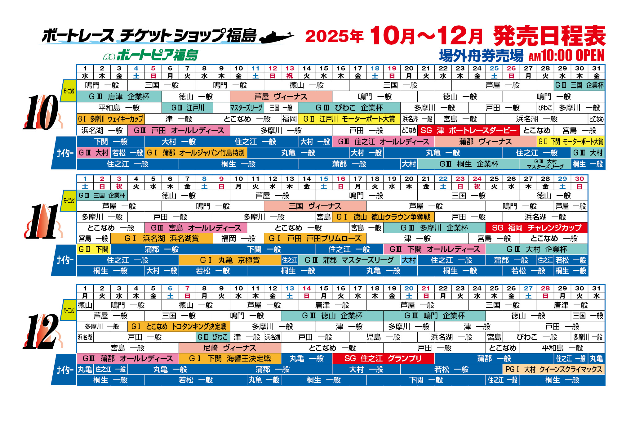 【競輪・ボートレース】2025年10月~12月発売日程表 設置のお知らせ