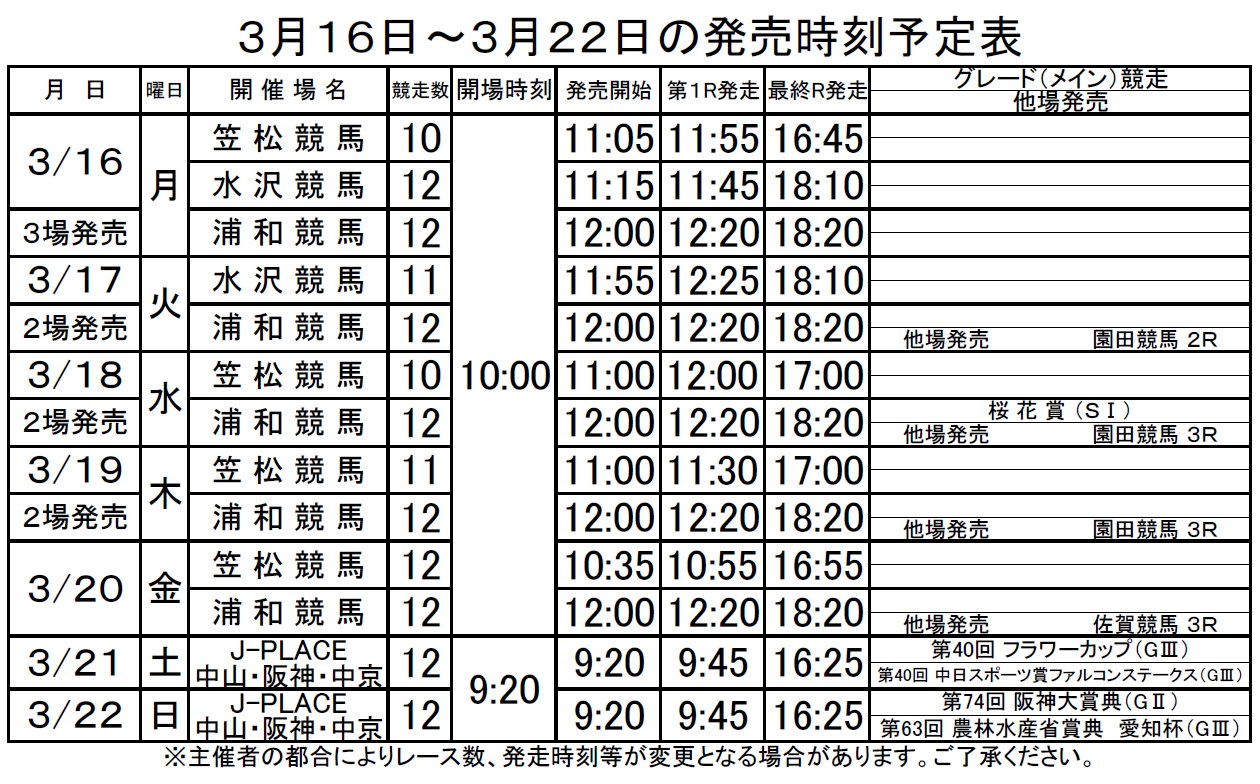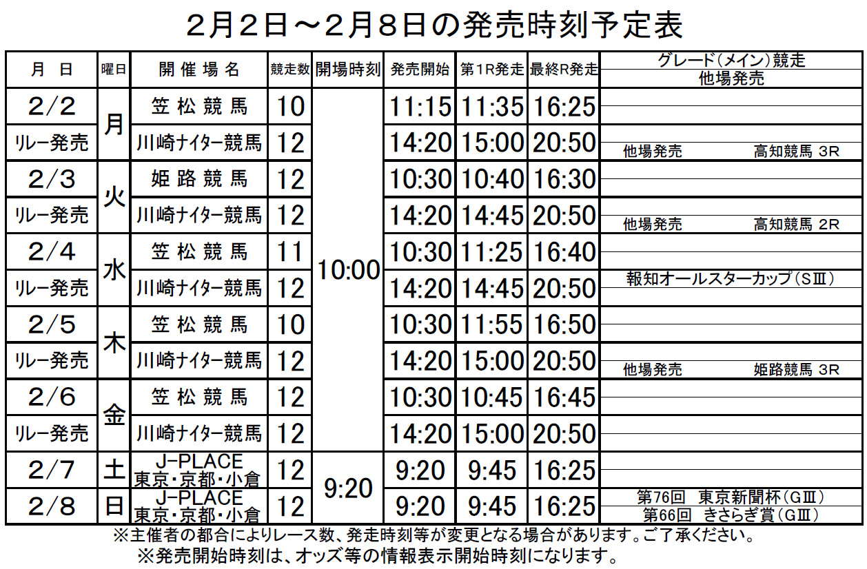 - 発売日程は予定につき日程及び競走タイトル名が変更される場合があります。