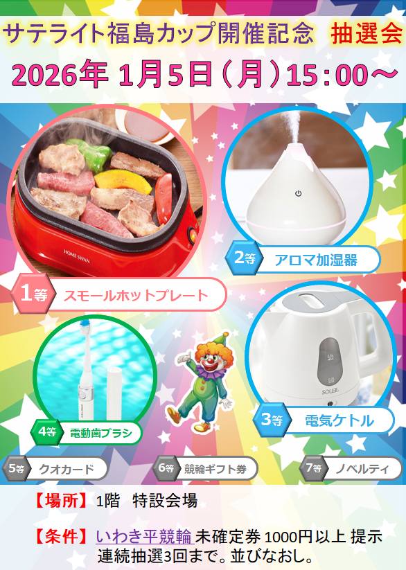 【競輪】《イベント》2026年1月5日(月)【サテライト福島カップ】開催記念抽選会のお知らせ