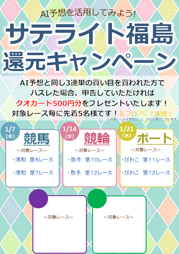 【競輪・ボートレース・J-PLACE】《イベント》2025年12月21日(日)コラボ還元キャンペーンの お知らせ