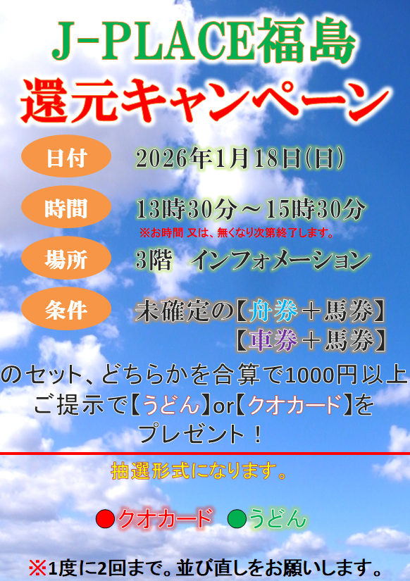 【競輪・ボートレース・J-PLACE】《イベント》2026年1月18日(日)コラボ還元キャンペーンの お知らせ